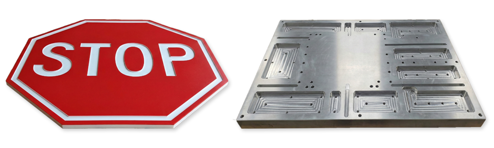 - Large, flat parts that require simple features (pockets, holes, profiles) and would be cost-prohibitive to produce on a standard CNC mill.